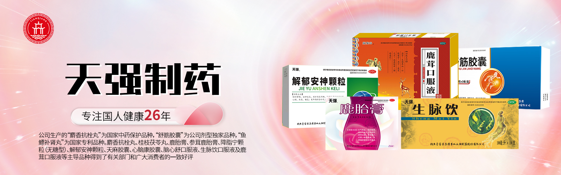 釣魚臺(tái)醫(yī)藥集團(tuán)吉林天強(qiáng)制藥股份有限公司地處素有“世界生物資源寶庫”之稱的長(zhǎng)白山脈龍崗山下,公司坐落在被中國(guó)醫(yī)藥質(zhì)量管理協(xié)會(huì)冠名的“中國(guó)醫(yī)藥城”的通化市柳河縣。得天獨(dú)厚的自然條件和資源優(yōu)勢(shì),使公司在藥企林立的醫(yī)藥山城別具特色而享譽(yù)國(guó)內(nèi)。公司成立于1999年9月,占地面積為2.73萬平方米,建筑面積為1.4萬平方米,注冊(cè)資金為5000萬元。現(xiàn)有員工210人,各類技術(shù)人員54人。依靠獨(dú)特的地理環(huán)境,天強(qiáng)人用心經(jīng)營(yíng),不斷進(jìn)步,公司在生產(chǎn)檢驗(yàn)上嚴(yán)格按照國(guó)家GMP相關(guān)規(guī)定執(zhí)行,確保產(chǎn)品質(zhì)量?jī)?yōu)良,療效上乘。企業(yè)先后被授予“國(guó)家級(jí)高新技術(shù)企業(yè)”、“國(guó)家級(jí)守合同重信用企業(yè)”、“吉林省專精特新企業(yè)”、“吉林省農(nóng)業(yè)產(chǎn)業(yè)化龍頭企業(yè)”、“吉林省首批人參種植產(chǎn)業(yè)化25戶企業(yè)之一”、“吉林省新產(chǎn)品開發(fā)先進(jìn)單位”、“吉林省經(jīng)濟(jì)技術(shù)創(chuàng)新單位”、“吉林省重點(diǎn)納稅大戶企業(yè)”等榮譽(yù)稱號(hào)。“天強(qiáng)”、“益壽通”商標(biāo)被評(píng)為吉林省著名商標(biāo)。公司于2002年進(jìn)行移地GMP改造,陸續(xù)完成并通過6個(gè)生產(chǎn)車間,8條生產(chǎn)線的GMP認(rèn)證。 釣魚臺(tái)醫(yī)藥集團(tuán)吉林天強(qiáng)制藥股份有限公司注冊(cè)的多個(gè)品牌已在國(guó)內(nèi)各地形成相對(duì)健全的銷售網(wǎng)絡(luò)。公司生產(chǎn)的“麝香抗栓丸”為國(guó)家中藥保護(hù)品種,“舒筋膠囊”為公司劑型獨(dú)家品種,“魚鰾補(bǔ)腎丸”為國(guó)家專利品種。麝香抗栓丸、桂枝茯苓丸、鹿胎膏、參茸鹿胎膏、降脂寧顆粒(無糖型)、解郁安神顆粒、天麻膠囊、心腦康膠囊、腦心舒口服液、生脈飲口服液及鹿茸口服液等主導(dǎo)品種得到了有關(guān)部門和廣大消費(fèi)者的一致好評(píng)。 公司于2006年建成了中藥材示范基地。目前擁有102公頃中藥材種植基地,完成了中藥材五味子、林下參的規(guī)范化種植栽培。同時(shí),企業(yè)建有梅花鹿馴養(yǎng)基地、林蛙養(yǎng)殖基地。未來企業(yè)將進(jìn)一步擴(kuò)大中藥材種植及梅花鹿、林蛙養(yǎng)殖,并帶動(dòng)周邊農(nóng)戶的中藥材種植熱情,真正起到農(nóng)業(yè)產(chǎn)業(yè)化龍頭企業(yè)的作用。 公司自1999年成立至今,已與吉林大學(xué)、長(zhǎng)春中醫(yī)藥大學(xué)、吉林省中醫(yī)藥科學(xué)院、長(zhǎng)春新紀(jì)元中藥研究所、北京歐克蘭醫(yī)藥技術(shù)開發(fā)中心等大專院校和科研院所密切合作。2016年10月,公司與中國(guó)中醫(yī)科學(xué)院醫(yī)學(xué)實(shí)驗(yàn)中心簽訂了合作框架協(xié)議,在中醫(yī)藥新產(chǎn)品研發(fā)、中藥產(chǎn)品再評(píng)價(jià)與深度開發(fā)、中藥質(zhì)量、人才培養(yǎng)等方面與公司進(jìn)行深度合作。2018年2月,公司又與吉林大學(xué)食品科學(xué)與工程學(xué)院建立了教學(xué)科研創(chuàng)新實(shí)踐基地,在保健品、特殊醫(yī)學(xué)食品研發(fā)及人才培養(yǎng)方面開展深度合作。在新的企業(yè)發(fā)展戰(zhàn)略背景下,公司在原有條件的基礎(chǔ)上引入更加先進(jìn)的研發(fā)設(shè)備和高端人才,重點(diǎn)發(fā)展保健食品及特殊醫(yī)學(xué)食品開發(fā)、中藥品種二次開發(fā)等大健康領(lǐng)域產(chǎn)品。同時(shí)開放中心檢測(cè)技術(shù)為本地相關(guān)制造業(yè)服務(wù),為社會(huì)和企業(yè)創(chuàng)造更高的價(jià)值。在科技投入上,企業(yè)以敏銳的視角,超前的洞察力,為企業(yè)的可持續(xù)發(fā)展奠定了堅(jiān)實(shí)的基礎(chǔ)。 企業(yè)在發(fā)展過程中,還積極投入到公益事業(yè)中,熱心的履行企業(yè)社會(huì)責(zé)任,多年捐款捐物,參與救弱扶殘、扶貧濟(jì)困、救災(zāi)重建、新農(nóng)村建設(shè)等活動(dòng)。 釣魚臺(tái)醫(yī)藥集團(tuán)吉林天強(qiáng)制藥股份有限公司以誠(chéng)信為立足點(diǎn),秉承“天強(qiáng),強(qiáng)天下百姓”這一宗旨,將以雄厚的實(shí)力,創(chuàng)新的活力,文化的魅力,在挑戰(zhàn)與機(jī)遇面前,以嶄新的面貌與廣大同仁一起攜手努力,將企業(yè)做大做強(qiáng),共創(chuàng)輝煌!